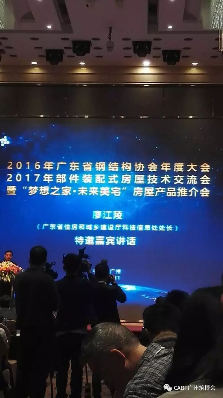 3月31日,2016年廣東省鋼結構協會年度大會暨2017年部件裝配式房屋技術交流會在廣州日航酒店舉行,會議同期舉辦了“夢想之家、未來美宅”房屋產品推介會,政府主管部門領導、行業專家、協會會員、新聞媒體、業內同行等250多名專業人士出席了會議。