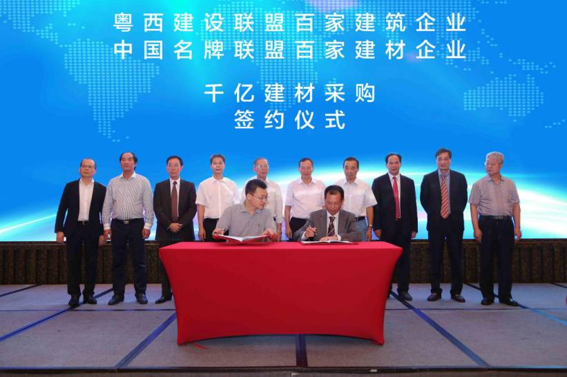 整個活動在“粵西建設聯盟百家建筑企業與中國名牌聯盟百家建材企業千億建材采購”簽約儀式中達到了高潮。