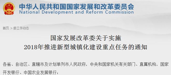國家發展改革委關于實施2018年推進新型城鎮化建設重點任務的通知